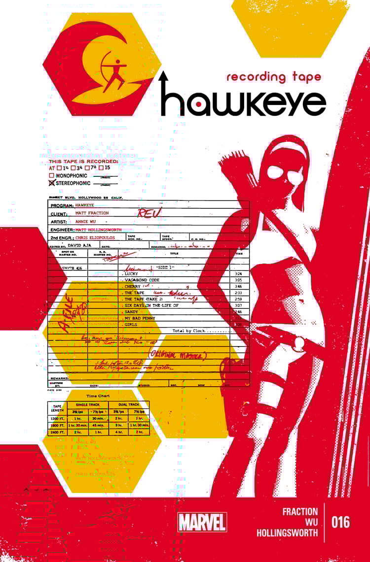 Single issues from Marvel's HAWKEYE run. #14 - #20 are from the "LA Woman" arc I did with Matt Fraction, Matt Hollingsworth, and Chris Eliopoulos. #8 is drawn by David Aja with romance covers I did scattered throughout.
